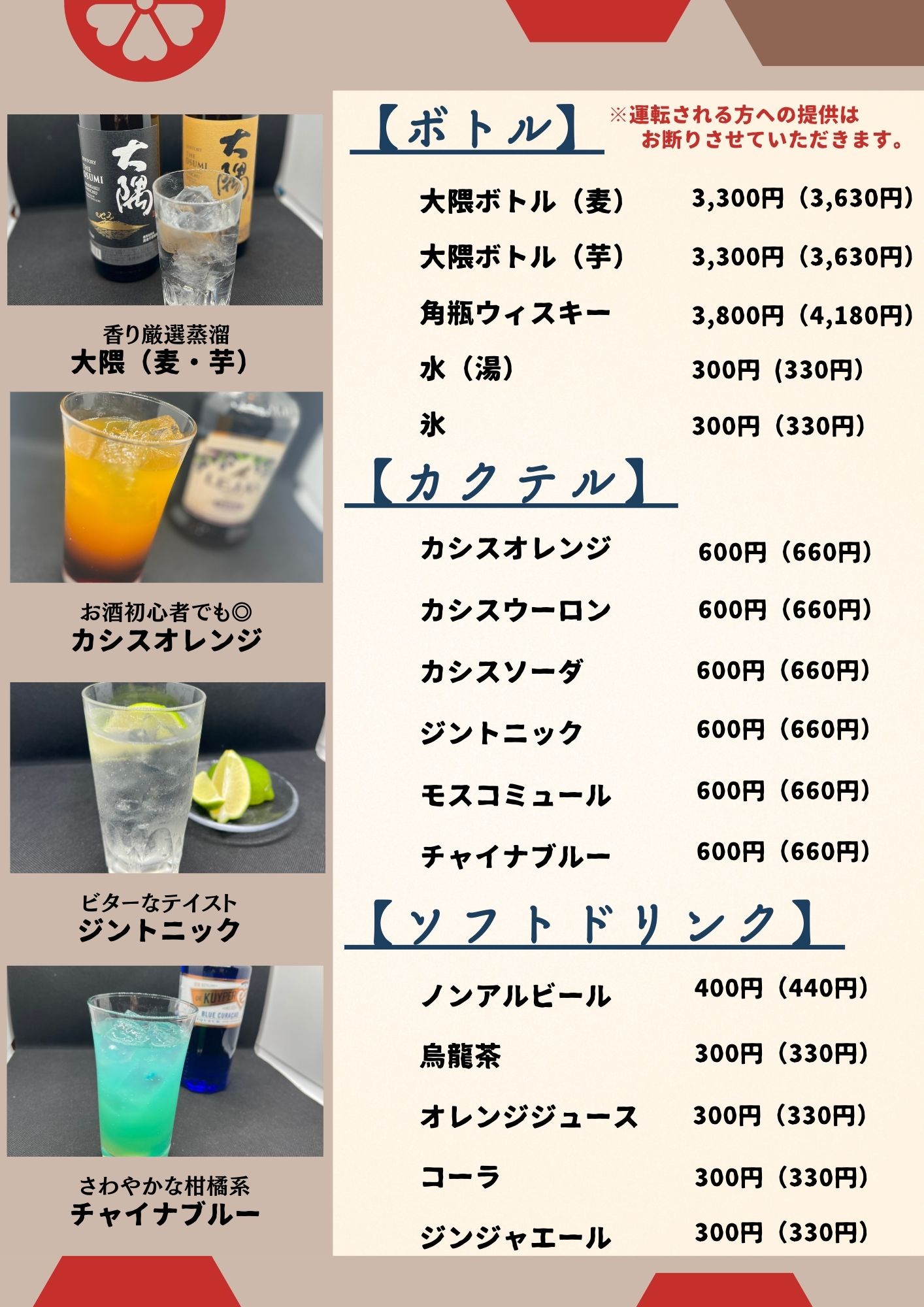 誠に勝手ながら、仕入れ・仕込みの観点から、コースは10名様からとさせていただきます。