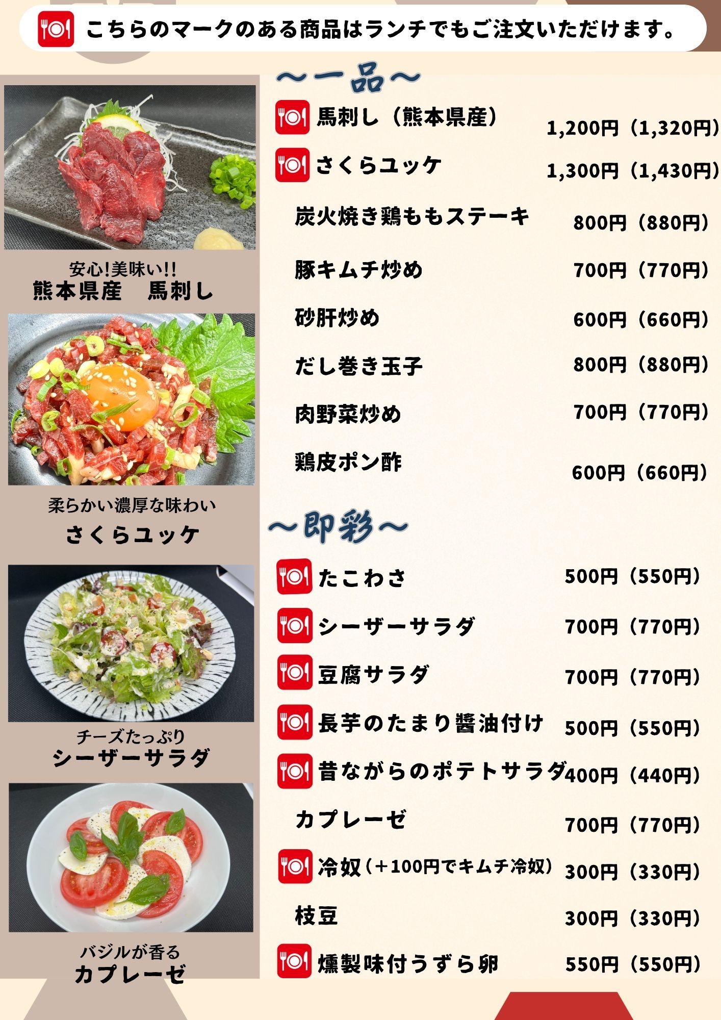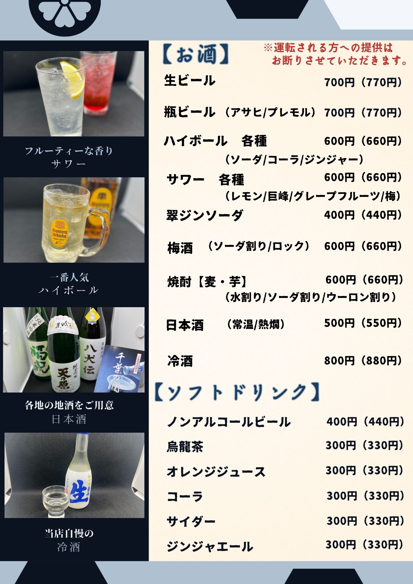 居酒屋ならではの定番料理から 季節ごとの食材を取り入れた創作料理、 房総の海の幸と地酒。 ゆったりとくつろげる半個室スペースで ご友人、ご家族と楽しいひと時を。